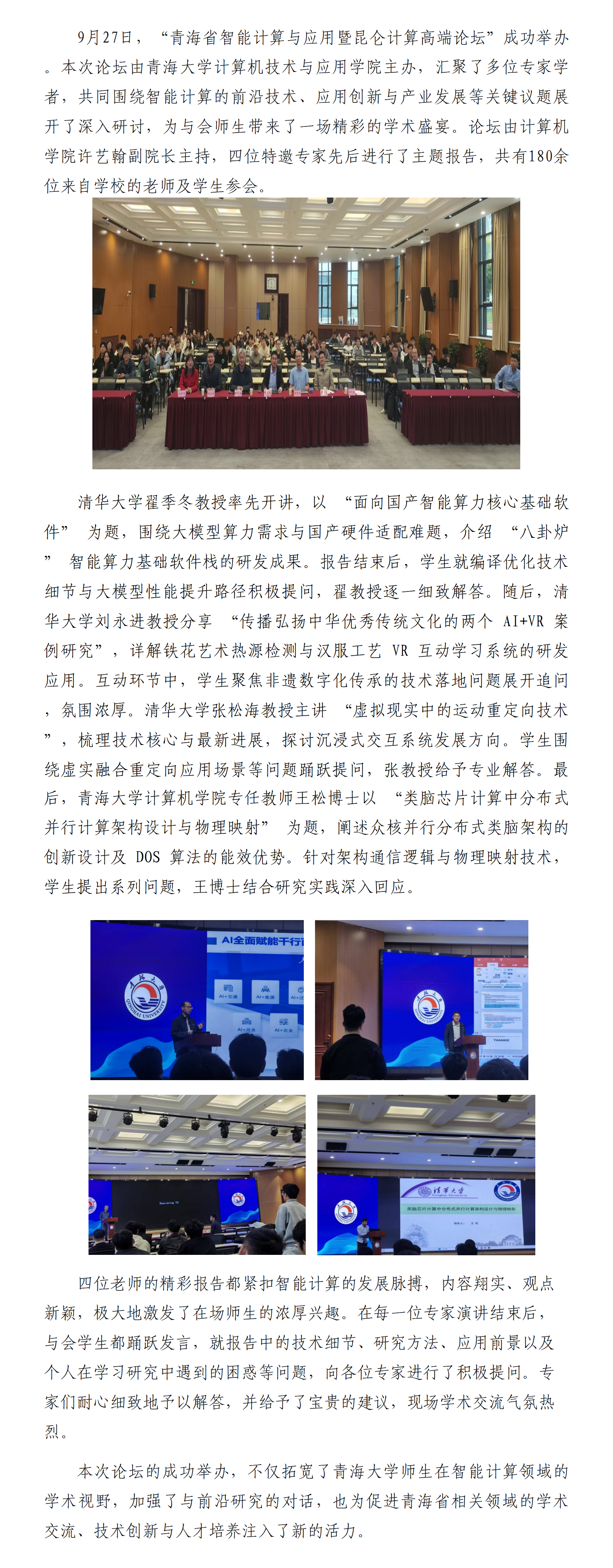 青海省智能计算与应用暨昆仑计算高端论坛成功举办